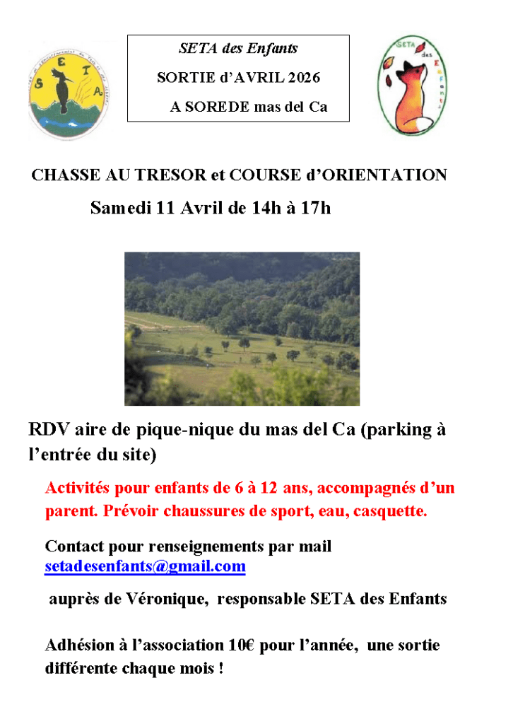 Et pour ceux qui n’auront pas la force, je rappelle que la SETA des Enfants proposera le même jour des ateliers-nature à SOREDE pour la Journée Sport Nature et Environnement organisée par la SJCS.